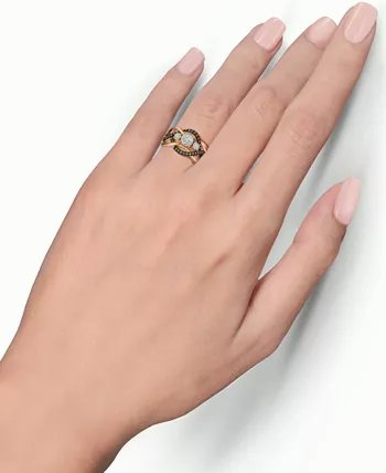 A trinity of round-shape white diamond clusters sits atop an openwork round-shape chocolate diamond accented shank to create this stunning ring (3/8 ct. t.w.) designed.