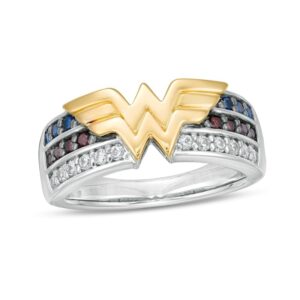 Garnet, Blue Sapphire and 1/15 CT. T.W. Diamond Symbol Ring in Sterling Silver